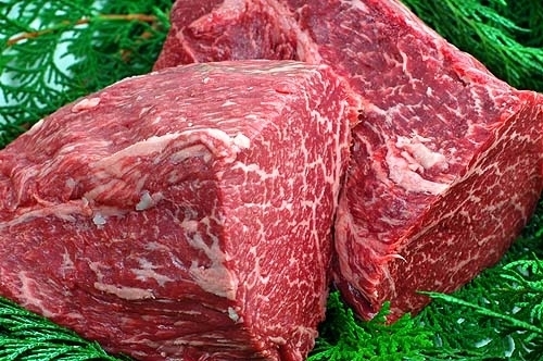 ももは主に赤身部分が多いため霜降りが入りにくいのですが、ひうちは霜降りが非常にきれいなすばらしい部位です。ロースにも負けないぐらいきれいな霜降りです。